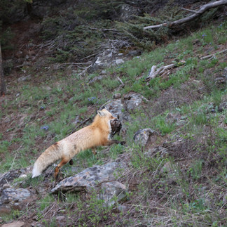 As we headed out the West Entrance, we spotted some bison and a red dog about to cross a river. We pulled off to watch.